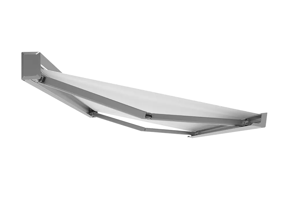 CLEO 5530 – Kompaktowa markiza o lekkiej konstrukcji, wyposażona w zewnętrzne konsole do elastycznego montażu ściennego i sufitowego. Możliwość regulacji kąta nachylenia do 65° (ściana) lub 80° (sufit). Idealna do przestrzeni wymagających minimalnej zabudowy.